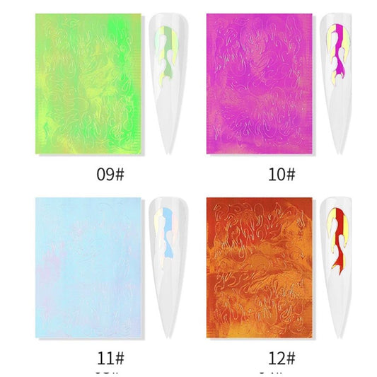 16 PCS Holographic Fire Flame Nail Art Decals